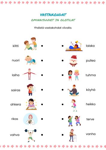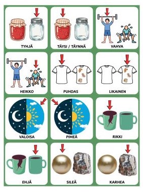 60 vastakohtakorttia, taustakuvat muistipeliin, yllätyskortit (20 sivua)
