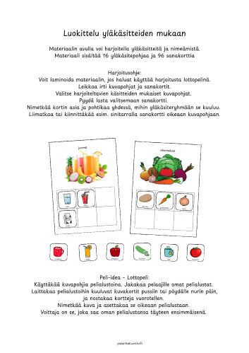 Sisältää 16 yläkäsitteen kuvapohjat ja 96 sanakorttia (13 sivua)
