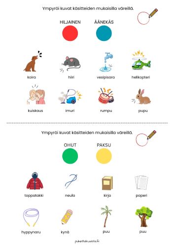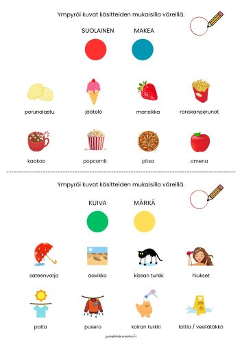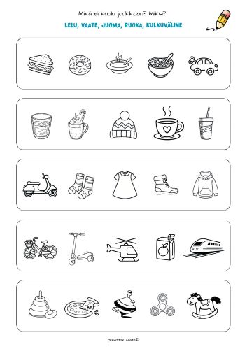 Mikä ei kuulu joukkoon. Ympyröi tai väritä. 15 yläkäsitettä (8 sivua)