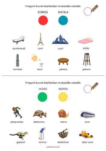 Ympyröi korkeat, matalat, hitaat, nopeat