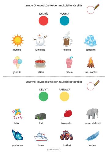 Ympyröi kylmät, kuumat, kevyet, painavat